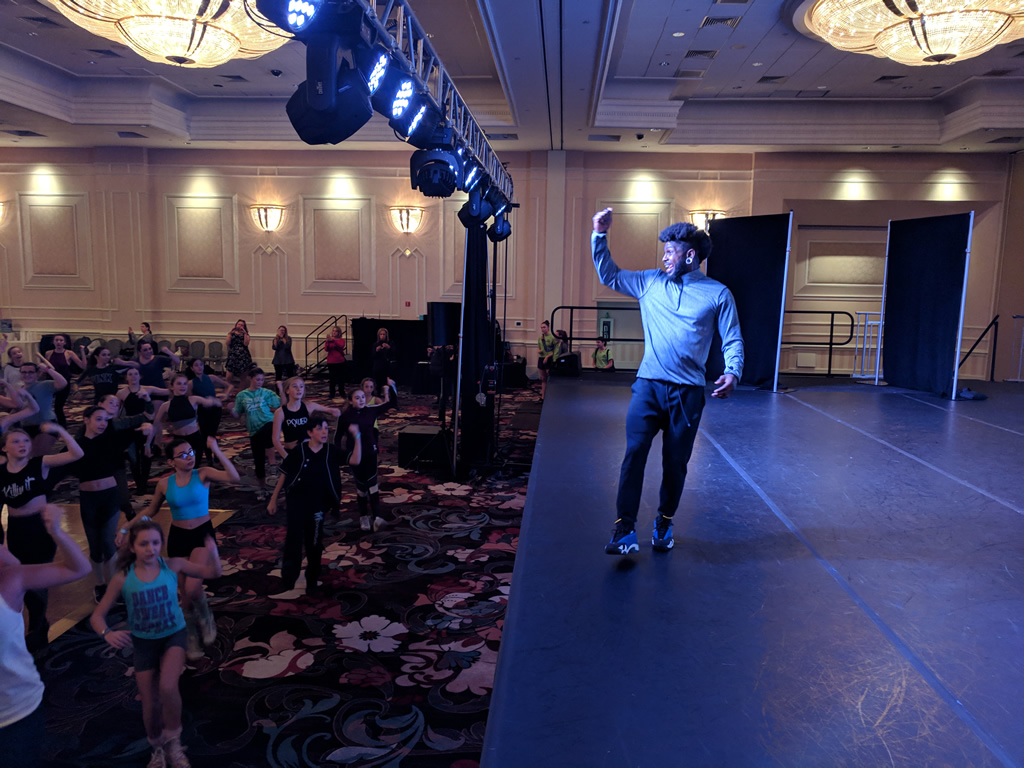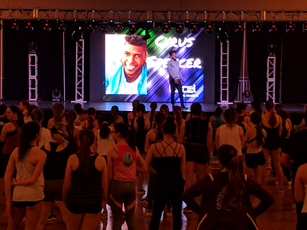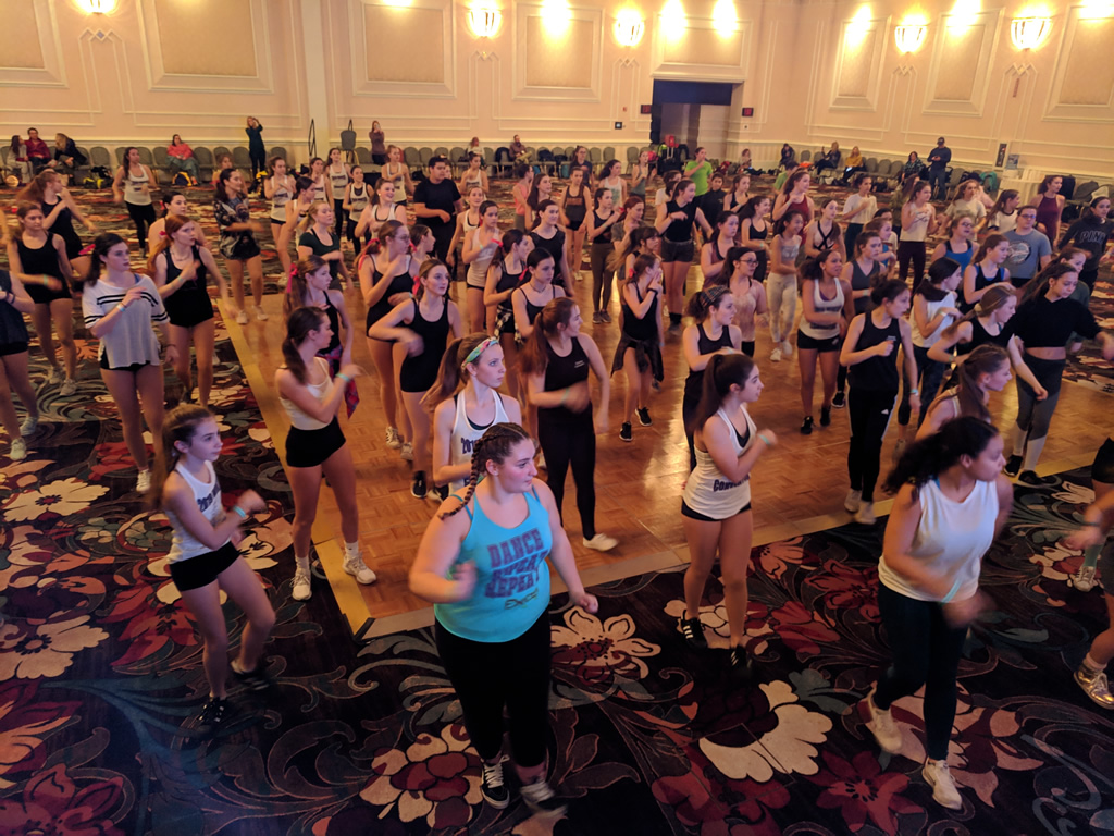 Excel chooses large ballroom spaces so everyone can have room to move in class. It is the nature of a convention (and part of the excitement!) to be crowded, but our teachers break classes up into groups to give everyone the chance to dance full out. We call on our dancers and observers to help utilize the entire space. Please do not bring large bags into the ballrooms for your classes. Bags and observers must stay behind the taped off areas in the ballrooms along the wall.